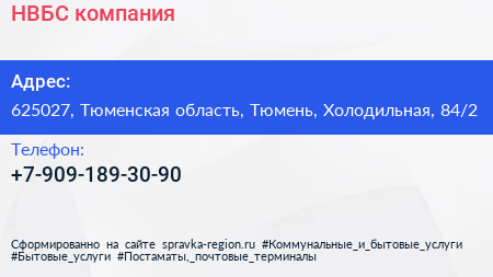 НВБС, компания по адресу 625027, Тюменская область, Тюмень, Холодильная, 84/2 в дальнейшем Организация, размещена в следующих категориях: