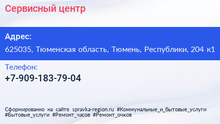 Сервисный центр по адресу 625035, Тюменская область, Тюмень, Республики, 204 к1 в дальнейшем Организация, размещена в следующих категориях: