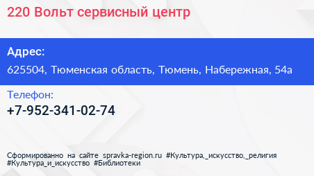 220 Вольт, сервисный центр по адресу 625504, Тюменская область, Тюмень, Набережная, 54а в дальнейшем Организация, размещена в следующих категориях: