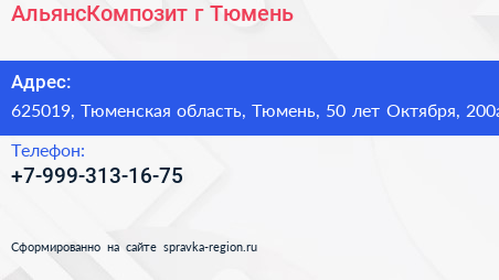 АльянсКомпозит, г. Тюмень по адресу 625019, Тюменская область, Тюмень, 50 лет Октября, 200а в дальнейшем Организация, размещена в следующих категориях: