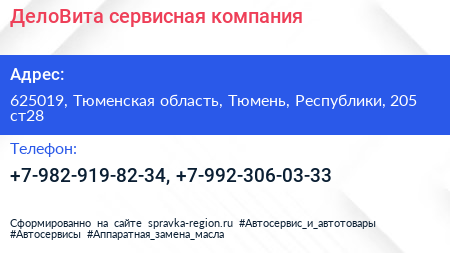 ДелоВита, сервисная компания по адресу 625019, Тюменская область, Тюмень, Республики, 205 ст28 в дальнейшем Организация, размещена в следующих категориях: