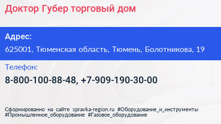 Доктор Губер, торговый дом по адресу 625001, Тюменская область, Тюмень, Болотникова, 19 в дальнейшем Организация, размещена в следующих категориях: