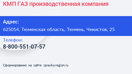 КМП-ГАЗ, производственная компания по адресу 625014, Тюменская область, Тюмень, Чекистов, 25 в дальнейшем Организация, размещена в следующих категориях: