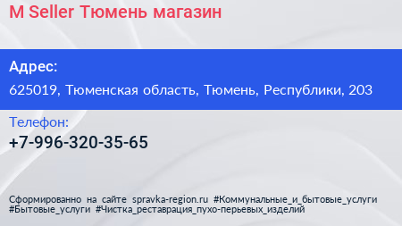 M-Seller Тюмень, магазин по адресу 625019, Тюменская область, Тюмень, Республики, 203 в дальнейшем Организация, размещена в следующих категориях: