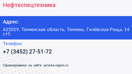 Нефтеспецтехника по адресу 625019, Тюменская область, Тюмень, Гилёвская Роща, 14 ст5 в дальнейшем Организация, размещена в следующих категориях: