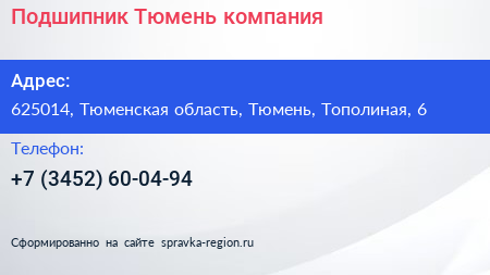 Подшипник-Тюмень, компания по адресу 625014, Тюменская область, Тюмень, Тополиная, 6 в дальнейшем Организация, размещена в следующих категориях: