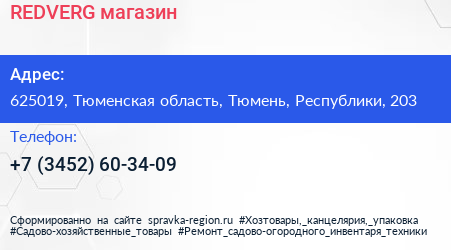 REDVERG, магазин по адресу 625019, Тюменская область, Тюмень, Республики, 203 в дальнейшем Организация, размещена в следующих категориях: