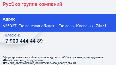 РусЭко, группа компаний по адресу 625027, Тюменская область, Тюмень, Киевская, 74а/1 в дальнейшем Организация, размещена в следующих категориях: