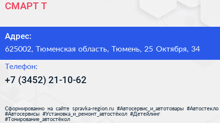 СМАРТ-Т по адресу 625002, Тюменская область, Тюмень, 25 Октября, 34 в дальнейшем Организация, размещена в следующих категориях: