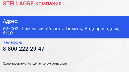 STELLAGRF, компания по адресу 625002, Тюменская область, Тюмень, Водопроводная, 6/10 в дальнейшем Организация, размещена в следующих категориях: