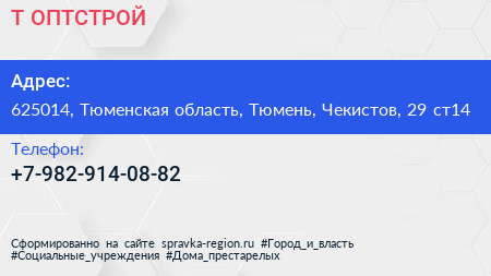 Т-ОПТСТРОЙ по адресу 625014, Тюменская область, Тюмень, Чекистов, 29 ст14 в дальнейшем Организация, размещена в следующих категориях: