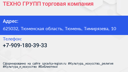 ТЕХНО ГРУПП, торговая компания по адресу 625032, Тюменская область, Тюмень, Тимирязева, 10 в дальнейшем Организация, размещена в следующих категориях: