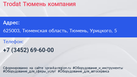 Trodat-Тюмень, компания по адресу 625003, Тюменская область, Тюмень, Урицкого, 5 в дальнейшем Организация, размещена в следующих категориях: