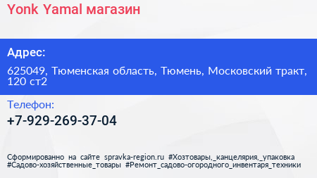 Yonk-Yamal, магазин по адресу 625049, Тюменская область, Тюмень, Московский тракт, 120 ст2 в дальнейшем Организация, размещена в следующих категориях: