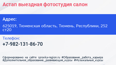 Астап, выездная фотостудия-салон по адресу 625019, Тюменская область, Тюмень, Республики, 252 ст20 в дальнейшем Организация, размещена в следующих категориях: