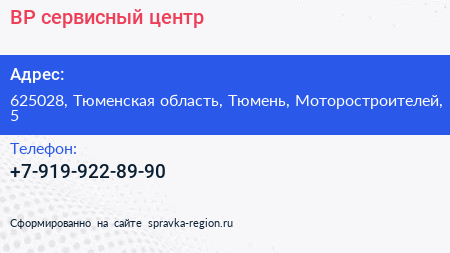BP, сервисный центр по адресу 625028, Тюменская область, Тюмень, Моторостроителей, 5 в дальнейшем Организация, размещена в следующих категориях: