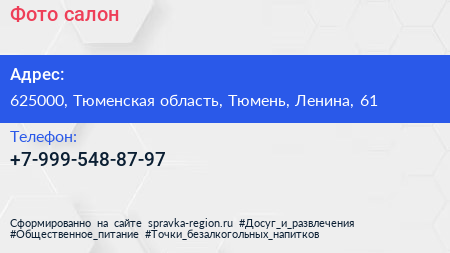 Фото салон по адресу 625000, Тюменская область, Тюмень, Ленина, 61 в дальнейшем Организация, размещена в следующих категориях: