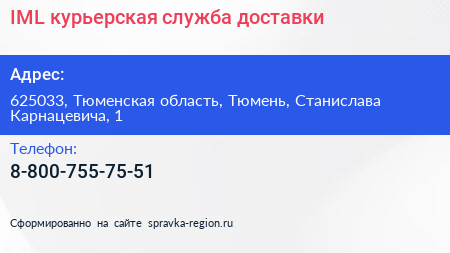 IML, курьерская служба доставки по адресу 625033, Тюменская область, Тюмень, Станислава Карнацевича, 1 в дальнейшем Организация, размещена в следующих категориях: