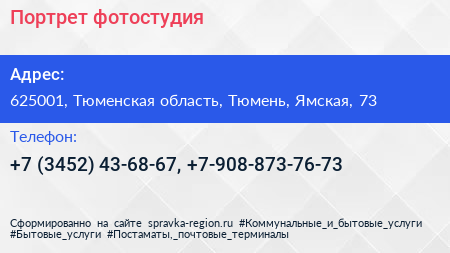 Портрет, фотостудия по адресу 625001, Тюменская область, Тюмень, Ямская, 73 в дальнейшем Организация, размещена в следующих категориях: