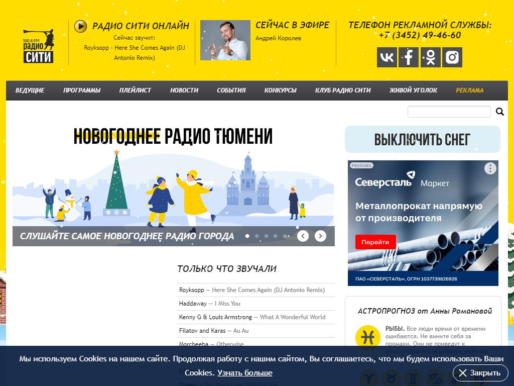 Радио Сити, FM 100.6 по адресу 625013, Тюменская область, Тюмень, Пермякова, 7/1 в дальнейшем Организация, размещена в следующих категориях: