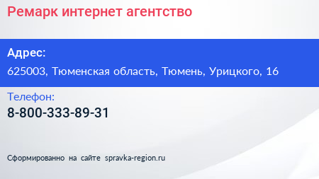 Ремарк, интернет-агентство по адресу 625003, Тюменская область, Тюмень, Урицкого, 16 в дальнейшем Организация, размещена в следующих категориях: