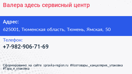 Валера здесь, сервисный центр по адресу 625001, Тюменская область, Тюмень, Ямская, 50 в дальнейшем Организация, размещена в следующих категориях: