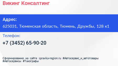 Викинг Консалтинг по адресу 625031, Тюменская область, Тюмень, Дружбы, 128 к1 в дальнейшем Организация, размещена в следующих категориях: