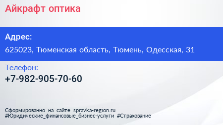 Айкрафт оптика по адресу 625023, Тюменская область, Тюмень, Одесская, 31 в дальнейшем Организация, размещена в следующих категориях: