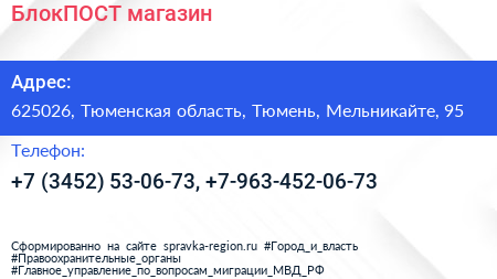 БлокПОСТ, магазин по адресу 625026, Тюменская область, Тюмень, Мельникайте, 95 в дальнейшем Организация, размещена в следующих категориях: