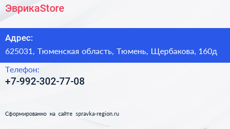 ЭврикаStore по адресу 625031, Тюменская область, Тюмень, Щербакова, 160д в дальнейшем Организация, размещена в следующих категориях: