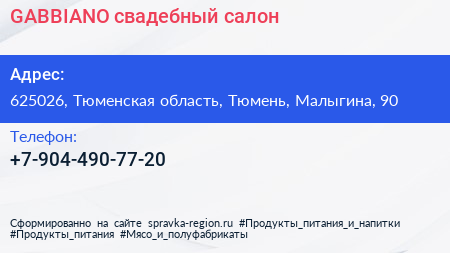 GABBIANO, свадебный салон по адресу 625026, Тюменская область, Тюмень, Малыгина, 90 в дальнейшем Организация, размещена в следующих категориях: