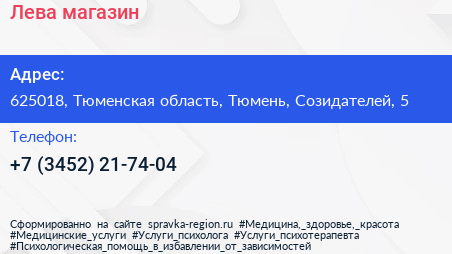Лева, магазин по адресу 625018, Тюменская область, Тюмень, Созидателей, 5 в дальнейшем Организация, размещена в следующих категориях: