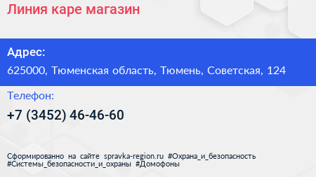 Линия каре, магазин по адресу 625000, Тюменская область, Тюмень, Советская, 124 в дальнейшем Организация, размещена в следующих категориях: