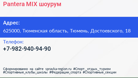 Pantera-MIX, шоурум по адресу 625000, Тюменская область, Тюмень, Достоевского, 18 в дальнейшем Организация, размещена в следующих категориях: