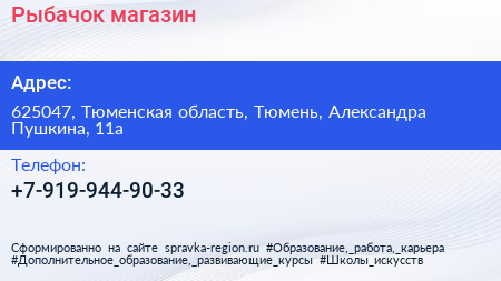 Рыбачок, магазин по адресу 625047, Тюменская область, Тюмень, Александра Пушкина, 11а в дальнейшем Организация, размещена в следующих категориях: