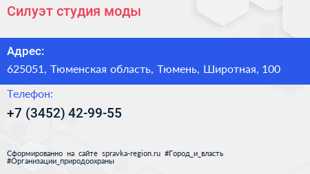 Силуэт, студия моды по адресу 625051, Тюменская область, Тюмень, Широтная, 100 в дальнейшем Организация, размещена в следующих категориях: