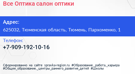Все Оптика, салон оптики по адресу 625032, Тюменская область, Тюмень, Пархоменко, 1 в дальнейшем Организация, размещена в следующих категориях: