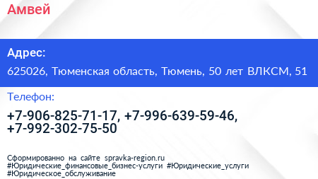 Амвей по адресу 625026, Тюменская область, Тюмень, 50 лет ВЛКСМ, 51 в дальнейшем Организация, размещена в следующих категориях: