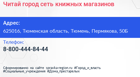 Читай-город, сеть книжных магазинов по адресу 625016, Тюменская область, Тюмень, Пермякова, 50Б в дальнейшем Организация, размещена в следующих категориях: