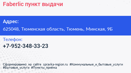 Faberlic, пункт выдачи по адресу 625048, Тюменская область, Тюмень, Минская, 9Б в дальнейшем Организация, размещена в следующих категориях: