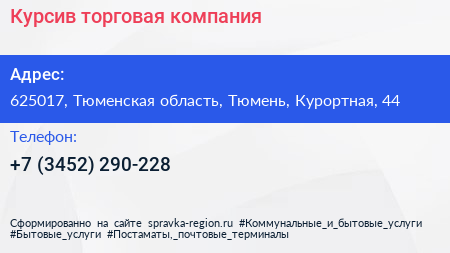 Курсив, торговая компания по адресу 625017, Тюменская область, Тюмень, Курортная, 44 в дальнейшем Организация, размещена в следующих категориях: