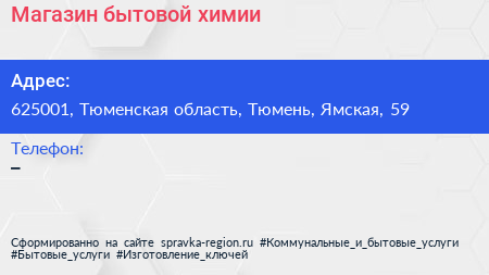 Магазин бытовой химии по адресу 625001, Тюменская область, Тюмень, Ямская, 59 в дальнейшем Организация, размещена в следующих категориях: