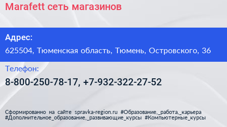 Marafett, сеть магазинов по адресу 625504, Тюменская область, Тюмень, Островского, 36 в дальнейшем Организация, размещена в следующих категориях: