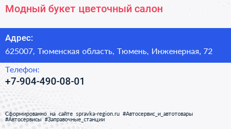 Модный букет, цветочный салон по адресу 625007, Тюменская область, Тюмень, Инженерная, 72 в дальнейшем Организация, размещена в следующих категориях: