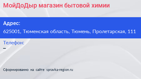МойДоДыр, магазин бытовой химии по адресу 625001, Тюменская область, Тюмень, Пролетарская, 111 в дальнейшем Организация, размещена в следующих категориях: