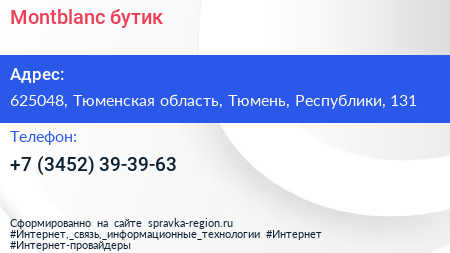 Montblanc, бутик по адресу 625048, Тюменская область, Тюмень, Республики, 131 в дальнейшем Организация, размещена в следующих категориях: