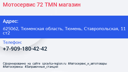Мотосервис-72-TMN, магазин по адресу 625062, Тюменская область, Тюмень, Ставропольская, 11 ст2 в дальнейшем Организация, размещена в следующих категориях: