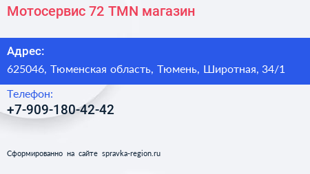 Мотосервис-72-TMN, магазин по адресу 625046, Тюменская область, Тюмень, Широтная, 34/1 в дальнейшем Организация, размещена в следующих категориях: