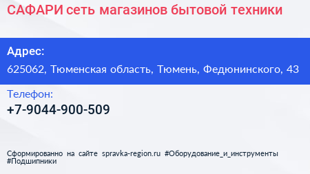 САФАРИ, сеть магазинов бытовой техники по адресу 625062, Тюменская область, Тюмень, Федюнинского, 43 в дальнейшем Организация, размещена в следующих категориях: