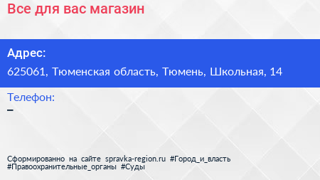 Все для вас, магазин по адресу 625061, Тюменская область, Тюмень, Школьная, 14 в дальнейшем Организация, размещена в следующих категориях: